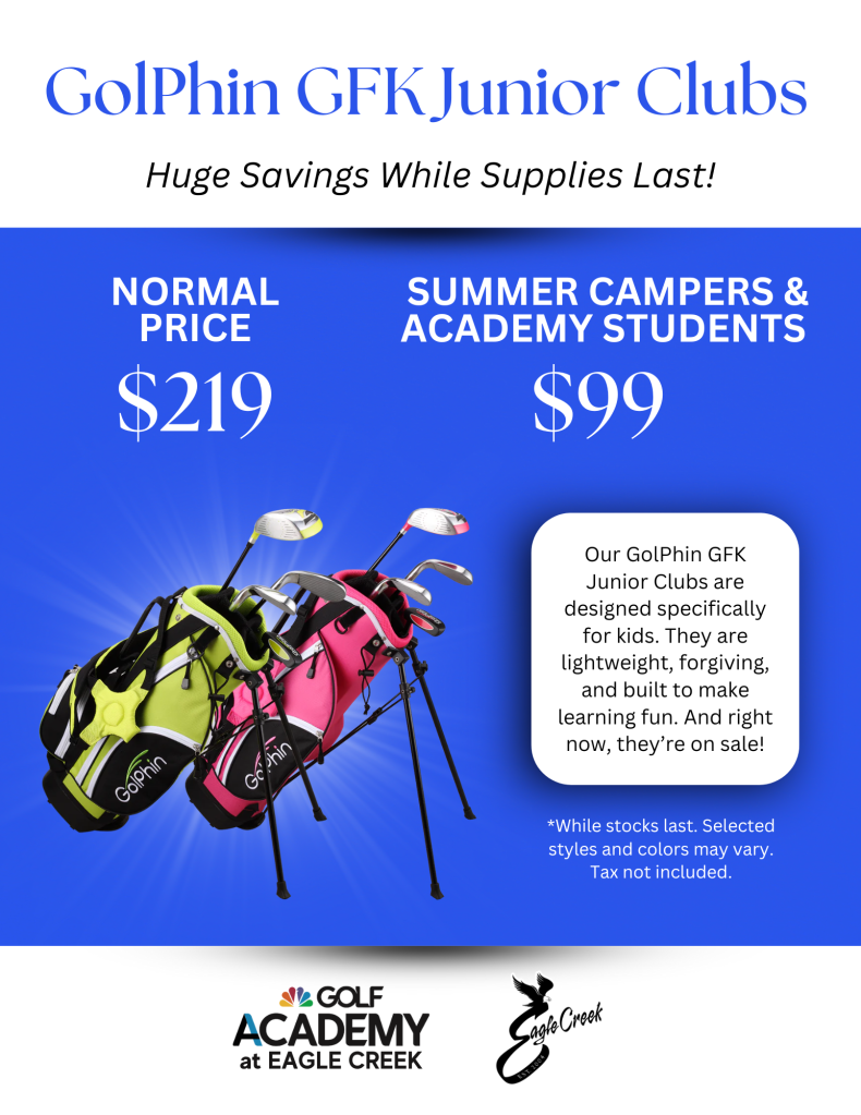 Club Fitting for juniors is critical to the enjoyment of golf for our golfers of tomorrow. We fit and stock only the finest quality junior golf clubs from US Kids & GolPhin. Ask our golf coaches today about club fitting and options for your child! We also offer special equipment savings for 2025 Summer Camp attendees.